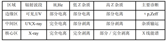 | 雜質(zhì)密度 | 邊界被動光譜診斷 電荷符合交換光譜 X射線彎晶譜儀 極紫外真空紫外譜儀 |
