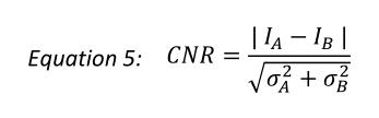 圖11通過方程5分析測量了不同厚度情況下的透過噪聲曲線。 通過圖11可以得出1.0cm與1.1cm厚度鋁材料之間得CNR值是2.6。相同厚度的銅材料CNR是11.4。假定CNR=1的情況是最小可以檢測的分辨率對比度,我們發(fā)現(xiàn)對于鋁的可探測的最小對比度是0.26%,銅是0.3%,表明圖像中的灰階值應該是350。這個值同時也取決于中子束特性、樣品的成分以及幾何結(jié)構(gòu)。