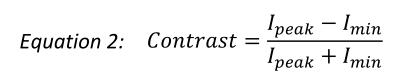 處理圖像后,在第一和第二組線對(25-1000um)成像中重現(xiàn)出多條線陣的輪廓。同時對于不同線對的尺寸用方程二進行對比度計算。計算圖像的MTF模式傳遞函數(shù)邊緣效應,使用了ImageJ軟件插件,針對邊緣ROI區(qū)域進行定義分析。