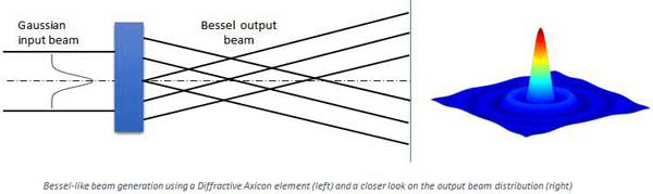 典型的應用包括成像,以及在非線性過程中提升焦深。可通過衍射DOE來構建貝塞爾光束。