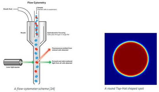 圖6.8 流式細胞術示意圖(左);圓形平頂光斑(右)
