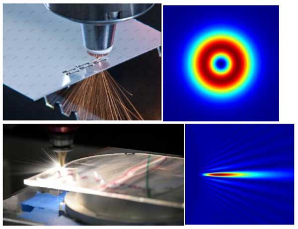 圖3.5 金屬切割與環形光斑(上),玻璃切割與貝塞爾焦斑(下)