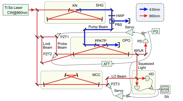 簡單講,光壓縮是為了提升探測系統的信噪比,這里常規而言,采用0型PPKTP晶體由于其很好的光子對轉化效率,首先提供了很高的信號水平;再進一步的在一個分量上進行壓縮,則獲得了這個分量更高的信噪比。