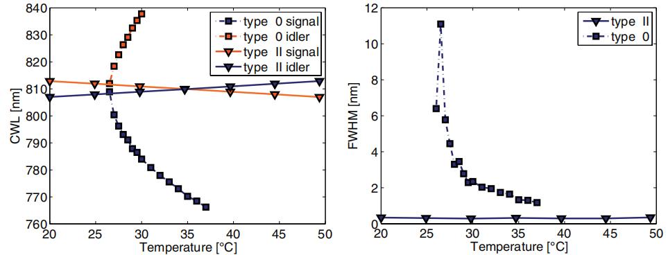 0型PPKTP輸出帶寬較寬,溫度敏感。 |
