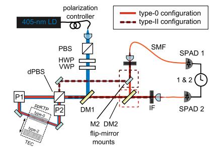圖七. 0型和II型PPKTP晶體自發參量下轉換驗證實驗