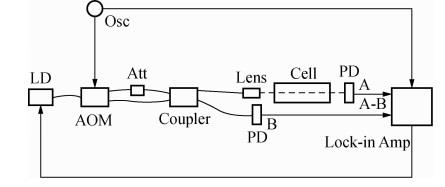 窄線寬激光器由于激光本體的原因,或者是環境擾動的原因會導致其輸出波長的抖動與漂移,而為了獲得窄線寬激光中心波長穩定的輸出,一個常用的穩頻(鎖頻)方式是氣體吸收法:如圖2.即尋找與目標波長完全匹配的某原子或分子吸收峰,利用這種原子或分子制備氣體吸收池;把待鎖頻的激光輸出分成兩路,其信號路通過氣體吸收池,越接近目標吸收峰則信號衰減越強;參考路信號強度與信號路強度與參考路強度信號做減法運算獲得偏離量,并據此偏離量做運算獲得一個反饋信號給激光器控制器,通過持續的反饋操作調節并鎖定激光波長到我們選定的氣體吸收峰上。