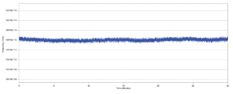 圖3. Bristol 公司872A-NIR 波長計測試1532nm 乙炔鎖頻激光器,持續測試時長30 分鐘,波長測試標準差191kHz