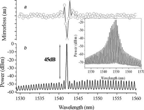 圖6. a.激光腔鏡間衰減系數曲線,b.離散模半導體激光器實現單縱模輸出