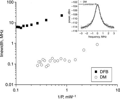 圖10. DM離散半導體激光器與DFB分布反饋半導體激光器的線寬更窄