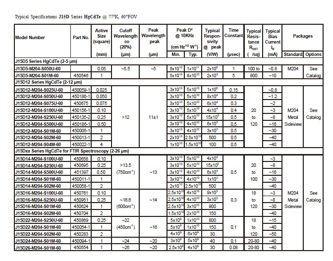 針對于FTIR特點,美國JUDSON公司的MCT探測器,具備靈敏度高,信噪比好等性能優(yōu)點,涵蓋2-22um的寬光譜范圍,從而能夠有效凸顯FTIR性能特點,進一步提升FTIR的性能優(yōu)勢。該系列產(chǎn)品有兩種制冷方式可供選擇,TE制冷與液氮制冷,既可以滿足用戶對高性能的追求,又能夠提升探測器使用的方便性。