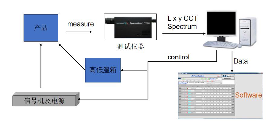 可實現常規光學測試如亮度、色度、色域測量、均勻性測試、水平垂直可視角測試、全視角測試、高低溫環境測試等。