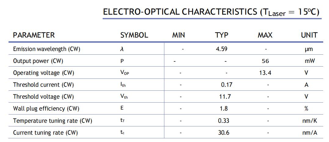 Eblana在2025年推出了基于DFB技術(shù)的QCL激光器。這款激光器可以工作在脈沖模式,也可以工作在連續(xù)模式。對(duì)于需要工作在中波紅外的氣體檢測(cè)應(yīng)用,這款QCL激光器就非常適合。