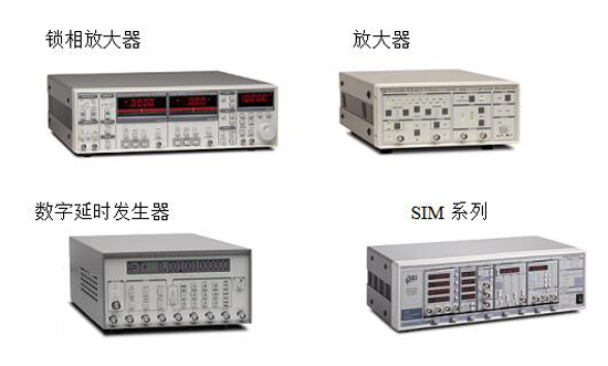 鎖相放大器(SR830,SR810,SR865等),放大器(SR560電壓前置放大器,SR570電流前置放大器等放大器),數(shù)字延時發(fā)生器(DG535,DG645):