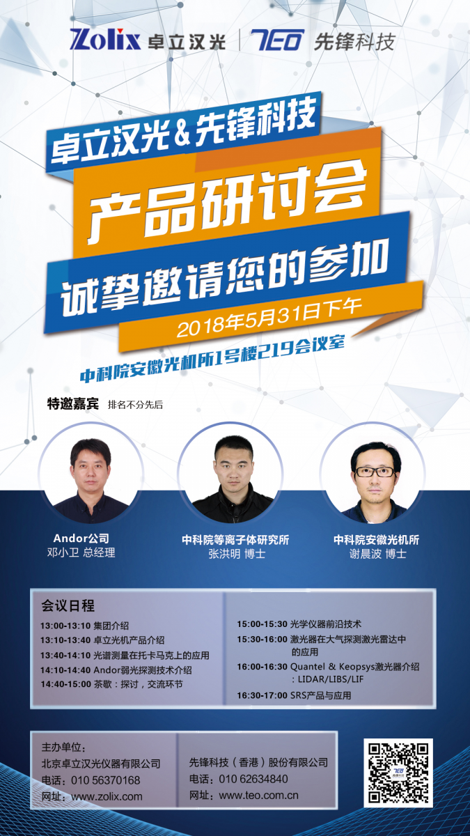 繼2018年4月卓立漢光聯(lián)合先鋒科技舉辦第一屆光電行業(yè)產(chǎn)品巡回研討會后,第二屆研討會來到中國科學(xué)院安徽光機所,具體會議詳情詳見如下綜述,各位敬請期待。