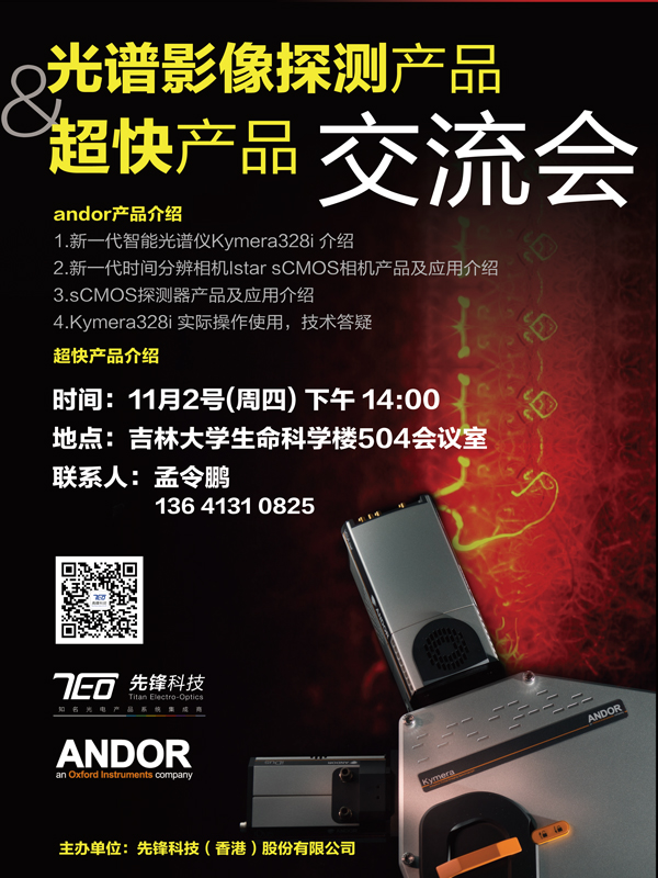 11月2日,由先鋒科技(香港)股份有限公司主辦的光譜影像探測(cè)產(chǎn)品及超快產(chǎn)品交流會(huì)即將在吉林大學(xué)召開,屆時(shí)歡迎廣大新老用戶報(bào)名。會(huì)議將會(huì)對(duì)新一代科研相機(jī)產(chǎn)品及超快激光器產(chǎn)品進(jìn)行詳細(xì)的介紹,也會(huì)針對(duì)用戶所關(guān)心關(guān)注的問題一起探討交流,誠摯邀請(qǐng)您的參與!