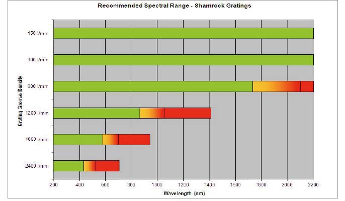 2)波長范圍:選擇合適的光柵閃耀波長,及光柵覆蓋波長
