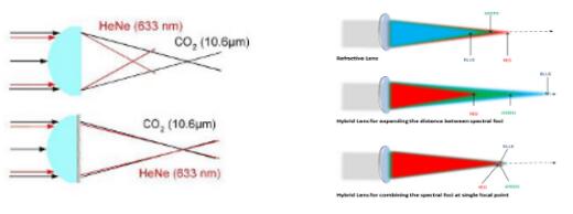采用DOE是一種輕薄而優雅的光學解決方案,可以輕松的克服波長相差很大的激光之間的色差,使得它們具備共同的焦點,精確瞄準。