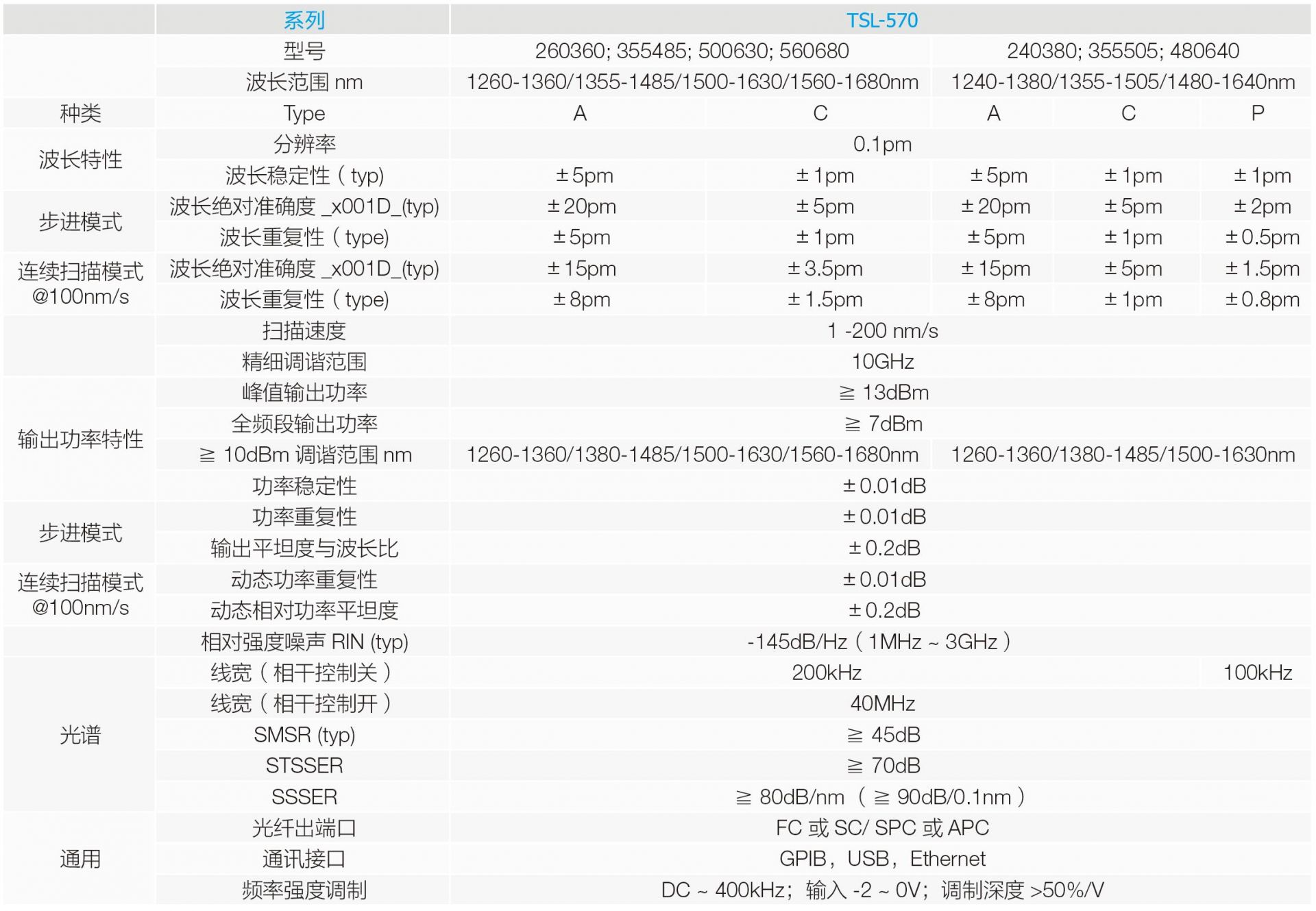 -TSL-570系列通用款:涵蓋全頻段,可連續掃頻,高波長與功率穩定度