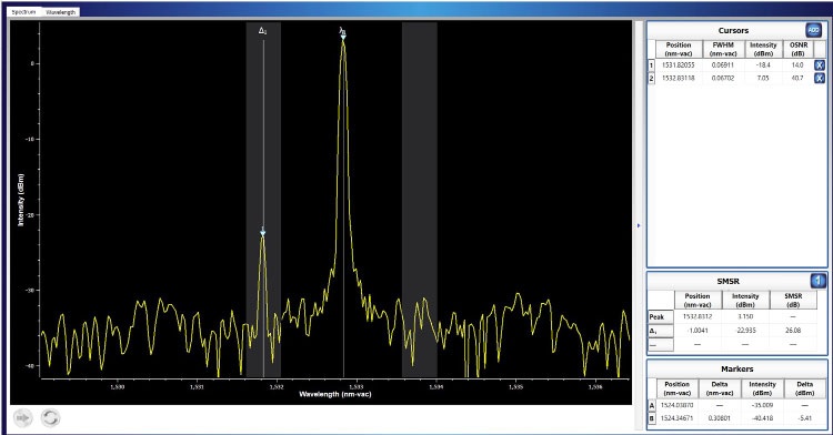 監控信道光譜特性:波長,帶寬,最大邊模抑制比等