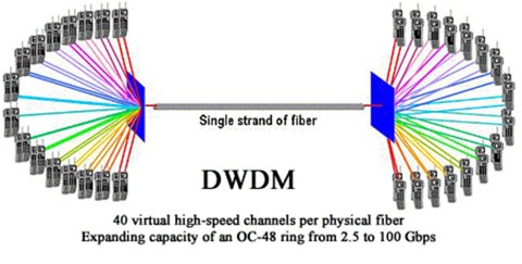 在實際應用上,WDM還分為CWDM稀疏波分復用與DWDM密集波分復用。