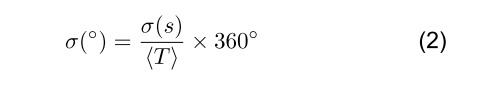 為了評估上述每種效應對斬波器抖動的影響,我們收集了 N 個周期的光信號,并將測量的周期繪制為時間的函數,以及所有測量值的直方圖。 我們不是以周期為單位繪制(秒),我們是以光學相位(°opt)為單位進行繪制。每個測量周期 Ti 均轉換為相位誤差 δψi,如下所示