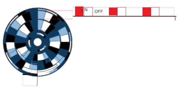 - 將兩個50%占空比的斬波片層疊安裝在同一個電機上,通過調(diào)節(jié)葉片相對的位錯實現(xiàn)調(diào)節(jié)占空比