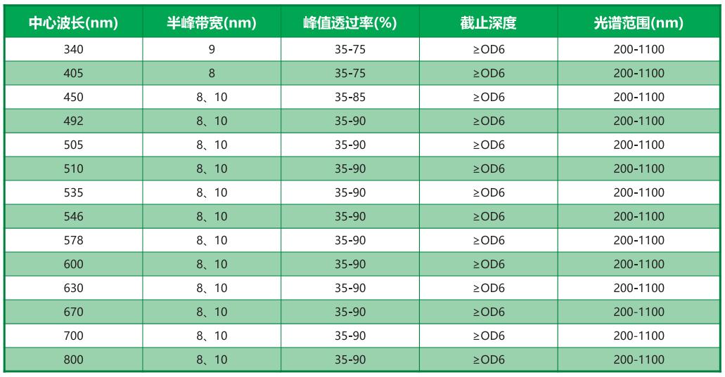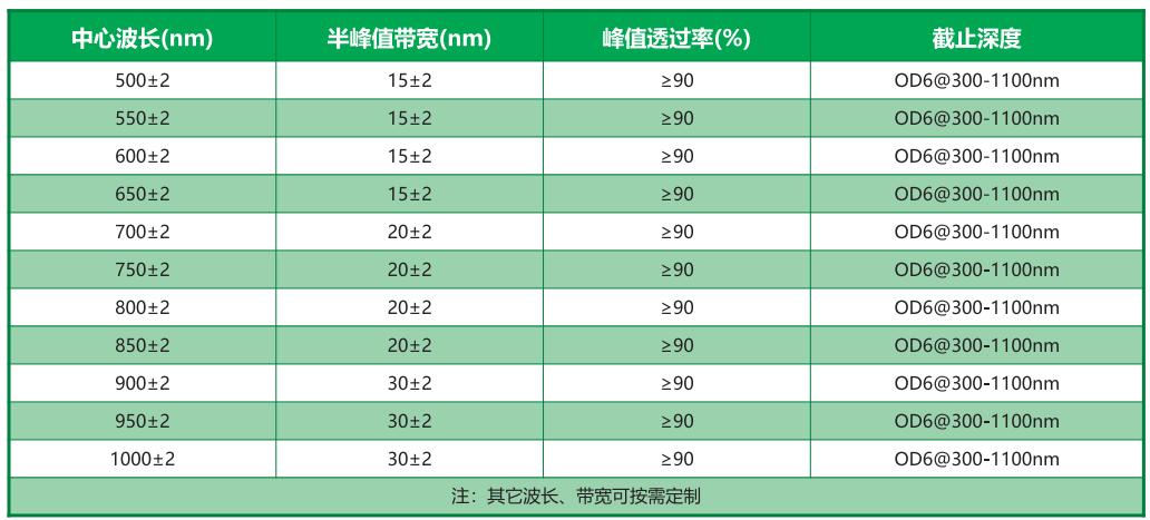 常用窄帶濾光片產(chǎn)品