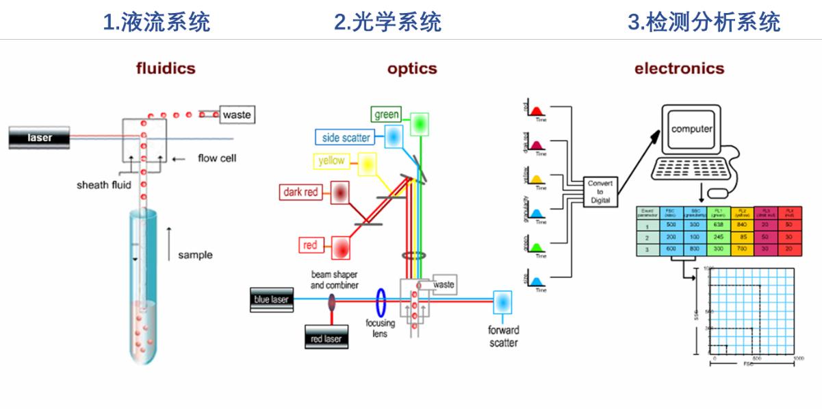 流動(dòng)細(xì)胞儀主要有以下五部分構(gòu)成: