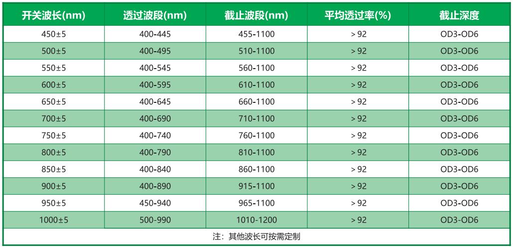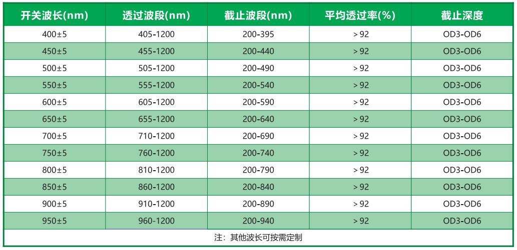 常用長(zhǎng)波通濾光片