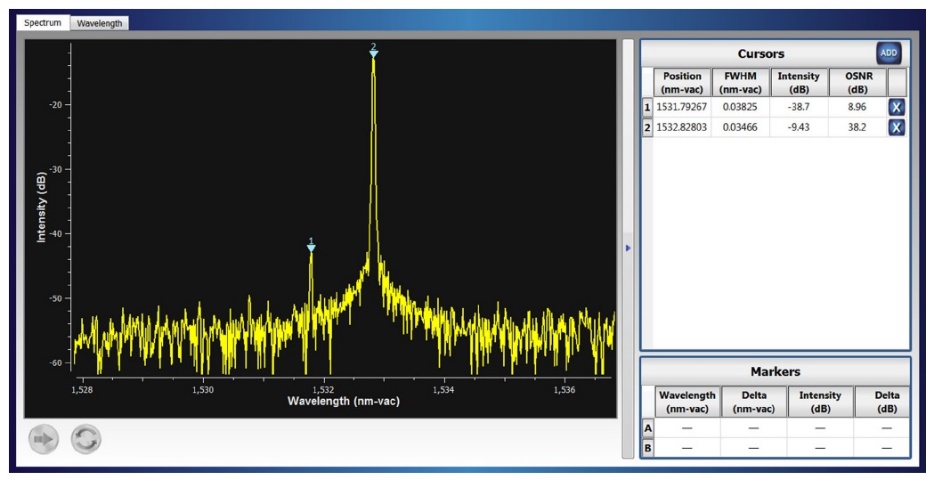 -771頻譜分析儀做單次頻譜分析測試需要2秒時間,對于激光頻譜測試和激光器篩選與品質管理已經足夠快速,如果需要PID實時反饋控制激光波長建議選用刷新率可高達1kHz的871系列激光波長計。