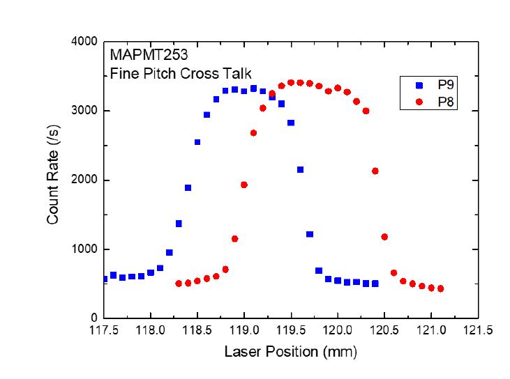 圖4. MAPMT253的細(xì)小間距串?dāng)_。