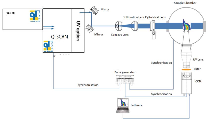 • 探測系統:根據要求采用合適的ICCD,進行適當的延遲后得到特定時刻的熒光信息;同時還可以加上光譜儀等設備,進行光譜分析,以便得到更豐富的信息;