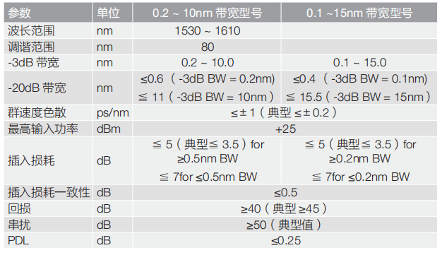 - 波長范圍:1530-1610nm(C&L 波段)