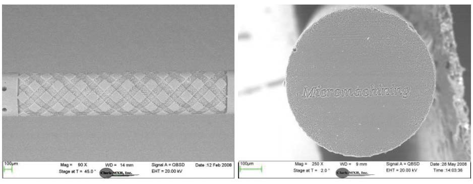 • 刻寫:支持多種材料體系的刻寫,包括晶體、金屬、難溶硬材料等。切口寬度可低至微米以下。
