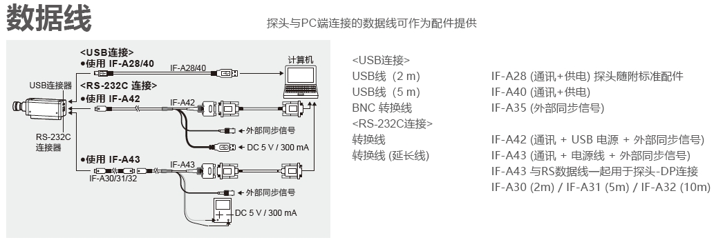 數據線 探頭與PC端連接的數據線可作為配件提供