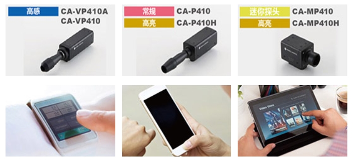 此類探頭的測量口徑適合測量智能腕表、小型智能手機、車載顯示屏等。有5 種型號:CA-VP410 高感探頭適用于低亮度的高速測量;CA-P410 常規探頭適用于廣泛的精度保證亮度范圍;CA-P410H 高亮探頭可以測量高達30,000 cd/m2的亮度;CA-MP410/MP410H 迷你探頭旨在實現小尺寸和高性價比。