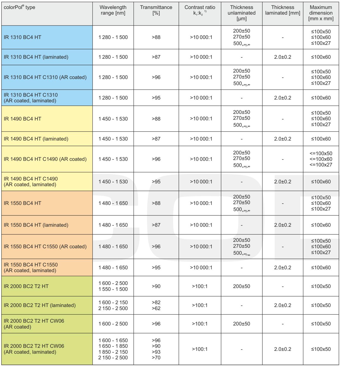 colorPol® 偏振片選型表