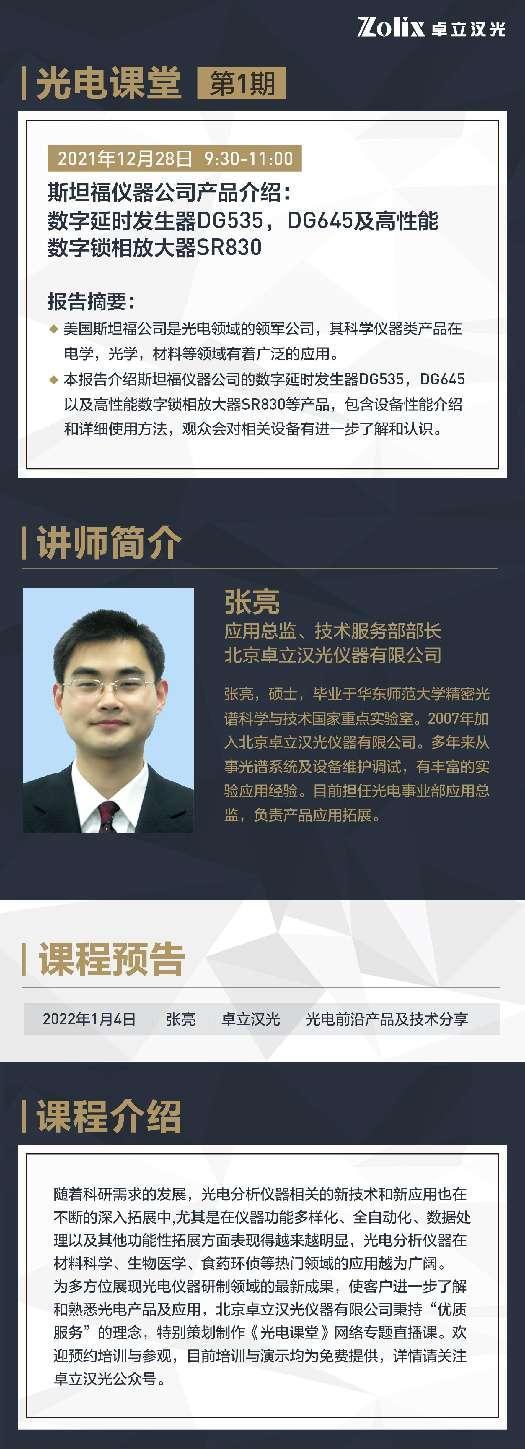 光電課堂第1期丨 張亮:斯坦福儀器公司產(chǎn)品介紹